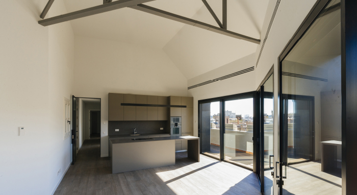Los tres áticos de Girona 2 se sitúan en lo más alto de un edificio centenario y catalogado, y sin embargo, destacan por su modernidad. Espaciosos, confortables y luminosos, cuentan con un gran balcón desde el que se pueden admirar algunos de los edificios más representativos de la ciudad y disfrutar del sol y la luz que ofrece Barcelona.