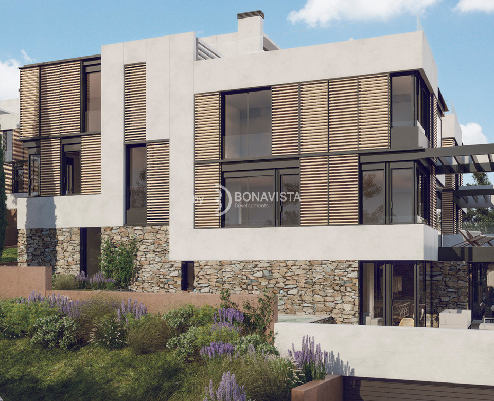 Each property spans between 480 and 630 m2, surrounded by private grounds and swimming pool, an underground service area and parking for 3 or 4 vehicles.