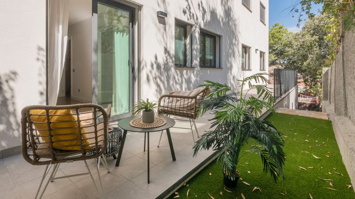 En Horta Guinardó encontramos esta vivienda en planta baja que hará las delicias de unos propietarios que quieran disfrutar de un piso moderno, con acabados exclusivos y mucha luz natural.