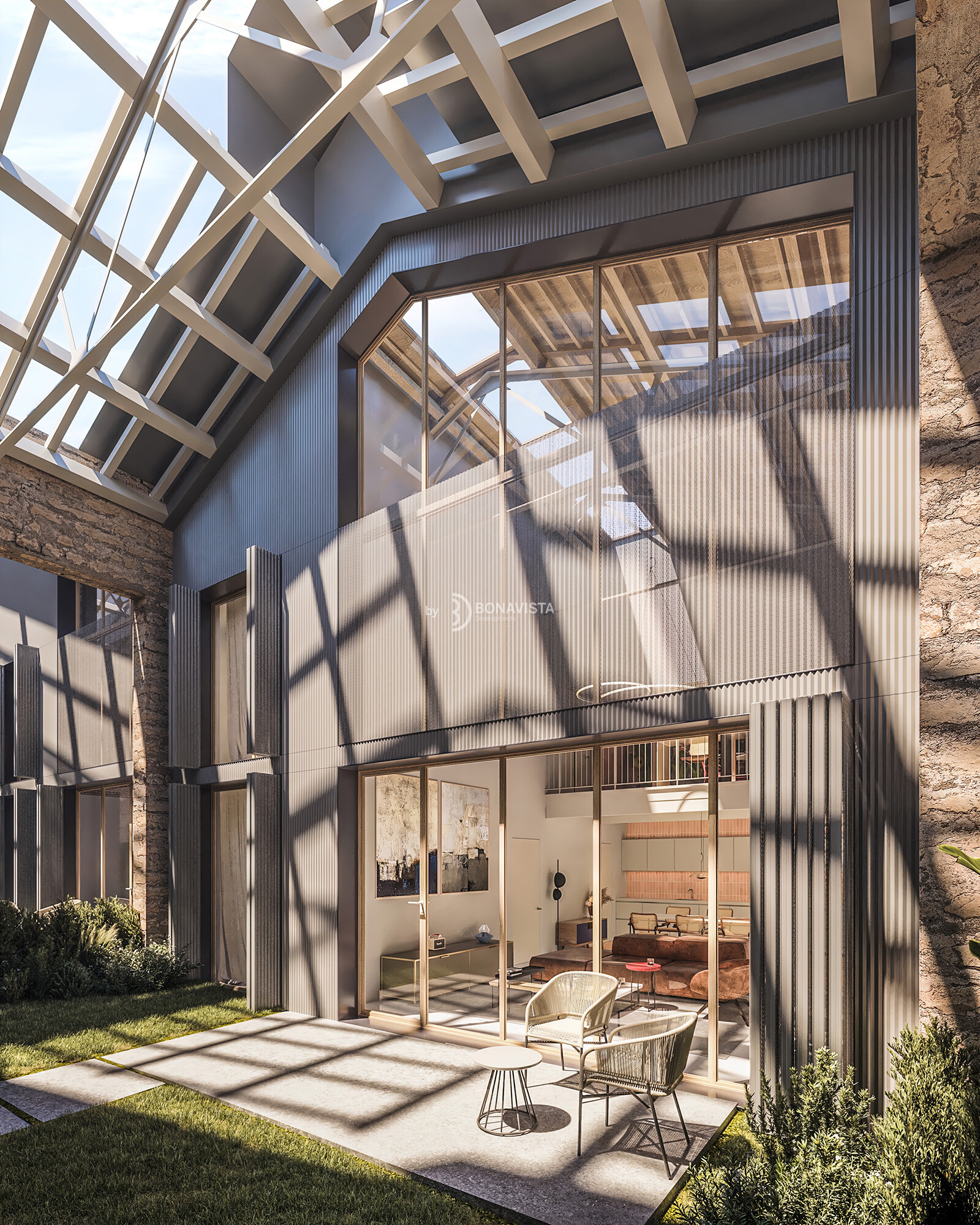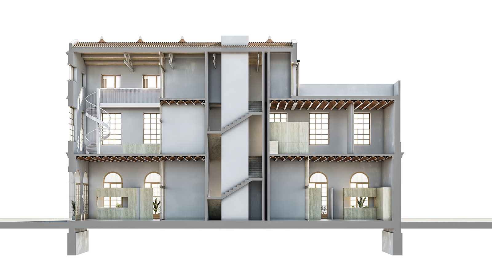 Sus fachadas preservan los arcos originales, ahora transformados en grandes ventanales y puertas de acceso. Todos incluyen terrazas interiores en las que disfrutar con total privacidad del cielo mediterráneo.